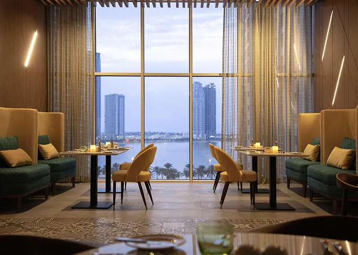 The 5-star Pullman Sharjah Hotel offers sophisticated accommodation with 180 rooms to stay in Sharjah. The venue is just 1 km from Al Khan Lagoon.